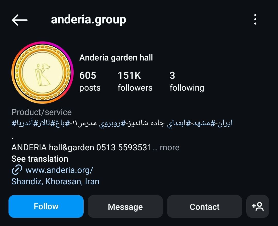 از بهترین باغ تالارهای مشهد برای مراسم عروسی میتوان به باغ تالار آندریا اشاره کرد. این باغ تالار دارای مساحت ۴۰۰۰ متر مربع بوده که سالن آن ۱۴۰۰ متر مربع مساحت دارد. مدیریت این تالار بهترین و باتجربهترین پرسنل را جهت پذیرایی از مهمانان شما انتخاب کرده است. سفره عقد مجلل، اتاق عقد مجزا، پارکینگ اختصاصی، کافی شاپ، اتاق بازی کودکان، گلآرایی و شمعآرایی از امکانات این تالار هستند.